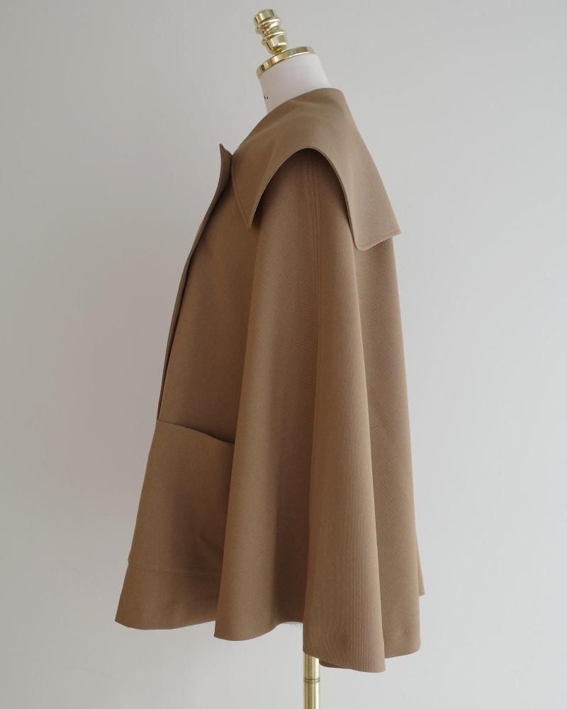 ベストな着丈でどんな体型や身長にも合うトレンチポンチョコート モデル身長:163cm ※当店のサイズ表記は、 当店スタッフが平置きにて計測した数値を記載しております。 ※シルエットやデザインなどにより、採寸結果には若干の誤差が発生してしまう場合がございますので、1〜2cmの誤差はあらかじめご了承ください。 ※画像の色合いにつきましては、細心の注意を払っていますが、実物のものとは多少違うところが御座います。 サイズ違い、イメージ違い等の不良品以外の返品は受け付けておりません為、気になる点がございましたら、ご注文前に何なりとご質問下さいませ☆! ご不明な点のございます方はお気軽にご相談くださいませ。