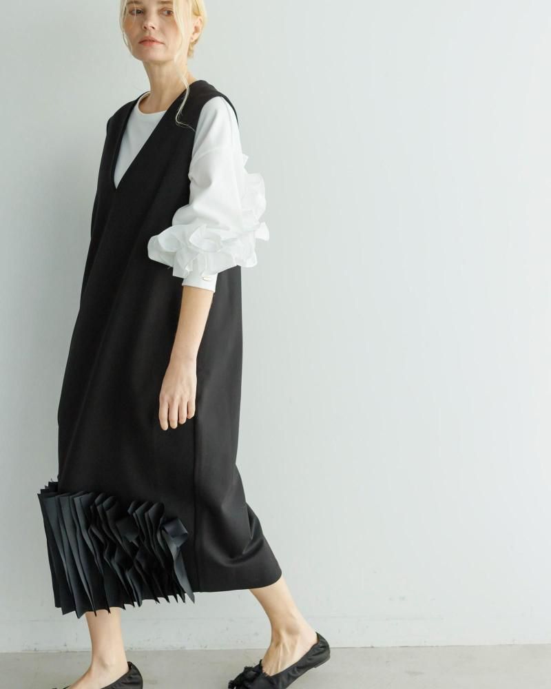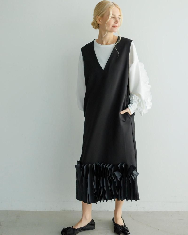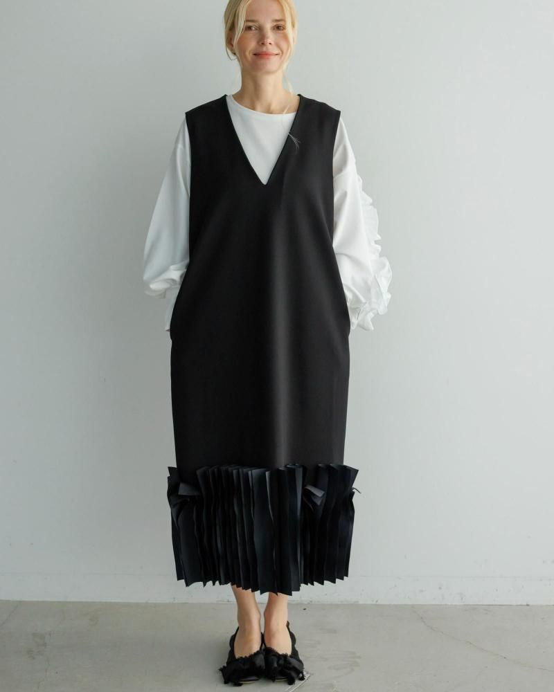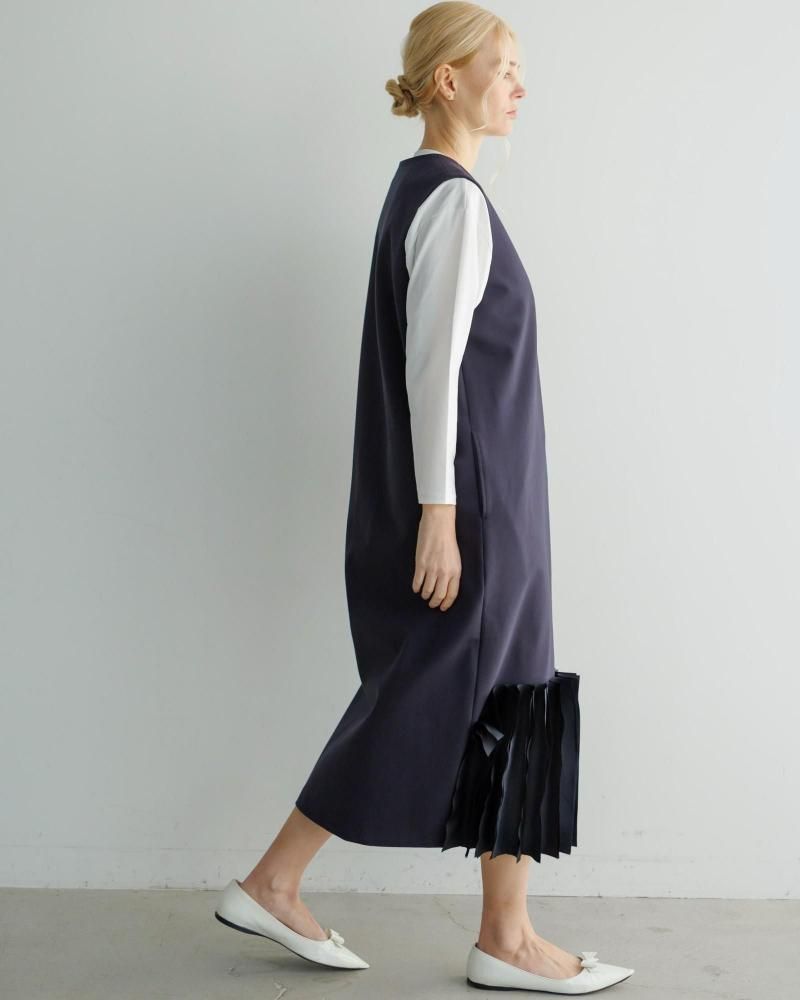ビスコース最大の特徴体に沿って柔らかく落ちるから美しいドレープが出るワンピース